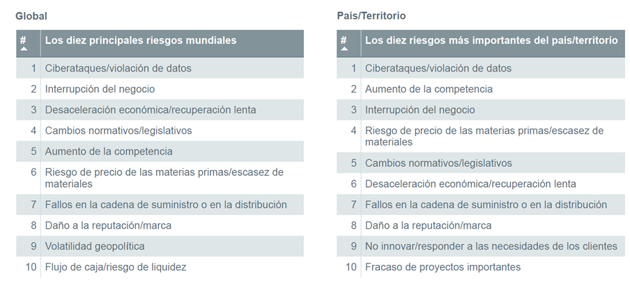 - Interrupción del negocio (3º puesto): La continuidad depende de tener personal capacitado y planes de sucesión adecuados
