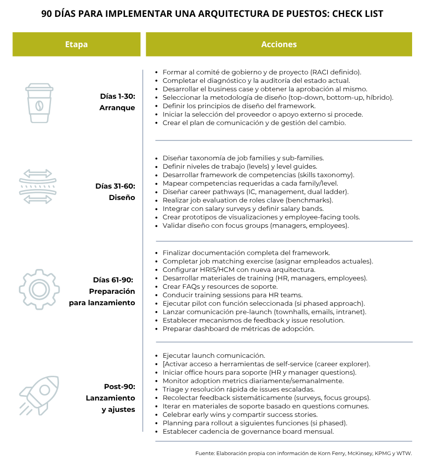 Funciona como un plano maestro que define los puestos, los niveles de responsabilidad y las rutas de carrera, asegurando que las decisiones sobre compensación, desarrollo y progresión profesional sean coherentes, justas y transparentes en toda la organización y siempre alineadas con lo que ésta necesita. Tiene, pues, un valor tangible porque permite mover las fichas del ajedrez en jugadas estratégicas; no se limita a organizar puestos (colocar las piezas en el tablero) sino que genera valor estratégico en toda la empresa al proporcionar claridad y consistencia (moverlas para ganar).