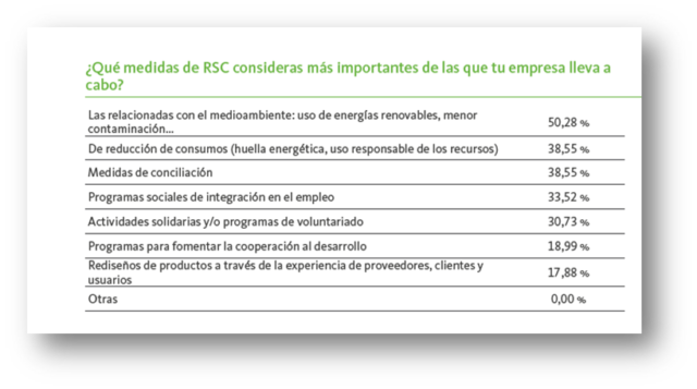Desde el punto de vista de los trabajadores, las medidas de Responsabilidad Social consideradas más importantes son las siguientes: